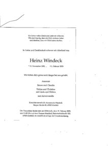 Nachruf für Heinrich Windeck, verstorben am 01.02.2025