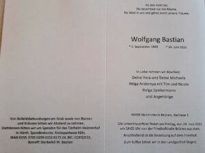 Wolfgang wird in unserer Gemeinschaft eine große Lücke hinterlassen; wir werden ihn nicht vergessen.